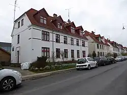 On the north side of Carl Jacobsens Vej is a development of building society houses built by Frederiksberg Arbejders Boligforening (Frederiksberg Workers' Building Society) for blue and white collar workers at the nearby Carlsberg and Trekroner breweries in 1902–05. It consists of 26 houses located on Karensgade, Gerdasgade, Kløverbladsgade and Trekronergade. They were designed by Ejner Blytmann and originally contained a total of 104 dwellings which has been merged into half as many in connection with a renovation.[4]
