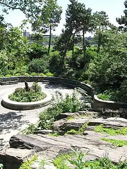 East River Park was renamed Carl Schurz Park in 1911.[3] The park was reconstructed in 1935 by Robert Moses, due to the creation of the FDR Drive,[4] with revised landscaping by Maud Sargent. The park's restoration from a neglected state in the early 1970s was due to the energies of a neighborhood group, the not-for-profit Carl Schurz Park Conservancy (incorporated 1974), formed originally to clean up the park's single playground.[5]