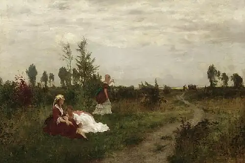 From 1869 to 1875, he was a member of Malkasten (paintbox), a progressive artists' association. Already ill by 1874, he paid frequent visits to his friends Gregor von Bochmann and Anton Mauve, as he thought coastal areas would be better for his health. Later, he would seek warmer climates, and died in Italy.