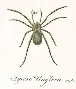 | ^ | Walckenaer, Charles Athanase: Histoire naturelle des insectes. Aptères 1. Paris, 1837, pp. 1–682. [Citation taken from P. Sacher, 1988, p. 141; modified] |