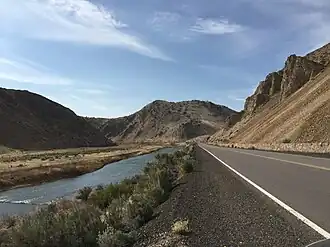 ![]() View west along old U.S. Route 40 and the Humboldt River in the Carlin Canyon | |