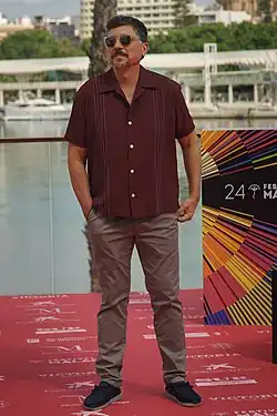 Bardem adapted alongside Santiago Zannou his own novel about the genesis of violence Alacrán enamorado to screen.[11] He also featured in the film, titled Scorpion in Love (2013), as a boxing coach, and won nominations to the Goya both for Best Adapted Screenplay and for Best Supporting Performance.[12][9] He described his character as "a deeply human and therefore imperfect character, who lives in permanent defeat, but who finds reasons to get up".[12] He portrayed evangelical pastor and charlatan Elías in Mexican thriller González: falsos profetas (2013), receiving a nomination for the Ariel Award for Best Supporting Actor.[13][14] In 2015, he appeared in Manolo Caro's comedy Elvira I Will Give You My Life But I'm Using It playing Gustavo, the husband of Cecilia Suárez's lead character Elvira.[15] Continuing his work in Mexico, he played a football agent in comedy-drama series Club de Cuervos,[16] which debuted on Netflix in 2015.