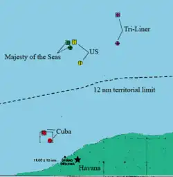 The ICAO report found that the aircraft shot down were both very near (and, in one case, directly above) a U.S fishing vessel named Tri-Liner which had a recorded position at the time of the incident 9 nautical miles (17 km; 10 mi) outside Cuban territorial airspace.[9] Also nearby was the cruise ship Majesty of the Seas.[9]