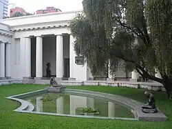 His first important commission came in 1935 with the project to build the Museum of Fine Arts of Caracas. This project allow him to create a space for the exhibition of art, one of his most important passions. Already at this time his devotion to the artistic vanguards of the century could be seen in his library, where his large collection of books on architecture was complemented by those on art. It was also during this time that he met the sculptor Francisco Narváez with whom he collaborated in the Museum of Fine Arts as well as in a series of other important projects like the "Natural Science Museum"(1936–1939) and the "Gran Colombia School" (1939–1942) which became Villanueva's first attempt to bring into fruition the guiding principle of career: the synthesis of the arts. The buildings also showed Villanueva's application of some of the most defining ideas of modern architecture like the simplification of form and the importance given to functionality.