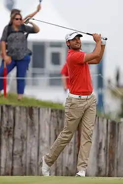 Born in Valencia, he was a successful junior, winning the Carris Trophy and the Duke of York Young Champions Trophy before taking up a scholarship at the University of Oklahoma, where he played on the golf team alongside Anthony Kim.[1] Del Moral turned professional in 2005, and joined the second-tier Challenge Tour for the following season, soon winning the Texbond Open[2] in Italy and ending the year 51st in the rankings. He spent the following two seasons gaining experience at Challenge Tour level, while playing occasionally on the main European Tour, with a best finish of 7th at the 2008 Madrid Masters.[3] At the end of the season, he finished in a tie for 2nd at the Qualifying School, earning him full playing rights for the 2009 European Tour season.[4]