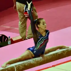 At the 2012 European Championships in Brussels in May, she contributed scores of 14.166 on vault, 14.900 on balance beam, and 13.900 on floor toward the Italian team's third-place finish.[20] The following month, at the Italian Championships in Catania, she placed second in the all-around (55.950),[21] fourth on uneven bars (13.500), first on balance beam (14.900), and fourth on floor (13.200).[22]