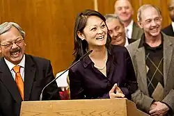 On September 25, 2007, she was appointed to replace the embattled San Francisco Supervisor Ed Jew, who was then suspended for alleged official misconduct.[16] The District 4 seat remained vacant for five and a half hours until Mayor Newsom appointed her to succeed Jew for the remainder of Jew's term.[17] Chu ran for election after Jew's term expired, and on November 4, 2008, she was elected by the voters as supervisor of District 4 for the term January 2009 to January 2011. Chu was re-elected as supervisor representing the Sunset/Parkside District for a four-year term in November 2010.