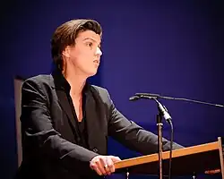 Carolin Emcke (born 18 August 1967) is a German author and journalist who worked for Der Spiegel from 1998 to 2006, often writing from areas of conflicts. From 2007 to 2014, she worked as an international reporter for Die Zeit. Her book Echoes of Violence – Letters from a War Reporter was published in 2007 at Princeton University Press. In 2008, she published Stumme Gewalt ("Mute force"), in 2013 How We Desire (German: Wie wir begehren), in 2016 Against Hate (German: Gegen den Hass), and in 2019 Yes means yes and... (Ja heißt ja und...). Carolin Emcke was honoured with several awards such as the Friedenspreis des Deutschen Buchhandels in 2016, and a Verdienstorden der Bundesrepublik Deutschland ("Federal Cross of Merit") in 2017.