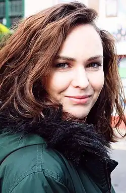 She is in the music video for the song "Genghis Khan" by Miike Snow, in the role of the wife of the Bond-villain character. She has worked on advertising campaigns for Warburtons as recurring character Michelle co-starring Robert de Niro, Sylvester Stallone, The Muppets and Peter Kay,[14] also for House of Fraser,[15] playing Cinderella, and was cast in a series of adverts for Walker's Crisps 'to get more young men to buy its crisps'.[16]