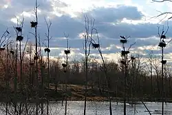 Bird species include songbirds, waterfowl, and birds of prey, such as herons, red-tailed hawk, common nighthawk, chestnut-sided warbler, eastern whip-poor-will, field sparrow, golden-winged warbler, indigo bunting, northern shrike, pileated woodpecker, great horned owl, and eastern towhee.[1][8]
