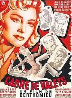 Four Knaves (French: Carré de valets) is a 1947 French comedy film directed by André Berthomieu and starring Jean Desailly, Martine Carol and Denise Grey.[1][2] It was shot at the Francoeur Studios in Paris. The film's sets were designed by the art director Raymond Nègre.