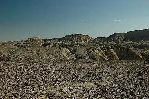The Carrizo Badlands are a landform of badlands that lie within Anza-Borrego Desert State Park in eastern San Diego County, and in the Carrizo Impact Area in western Imperial County, in Southern California.[1]