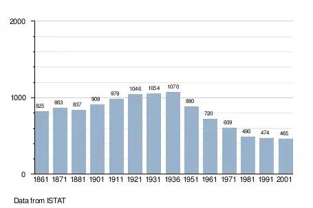 - ^ "Popolazione Residente al 1° Gennaio 2018". Italian National Institute of Statistics. Archived from the original on 30 June 2019. Retrieved 16 March 2019.