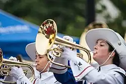 The W.T. Woodson BandOn April 1, 1973, a strong tornado struck Woodson High School and ripped off the roof.[21][22] It was hit on a Sunday and no injuries were reported among the 65-75 people playing basketball in the school gymnasium.[23] The students did a split shift with Oakton High School to finish out the school year.[24] Graduation ceremonies were held on their home football field.