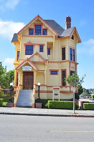 The building is a replica of an earlier structure originally located in San Francisco. Murphy House was constructed as a large home in 1884 by the builder architects Samuel Newsom and Joseph Cather Newsom of the firm Newsom and Newsom. These 19th-century Victorian architects also built the Carson Mansion at virtually the same time in Eureka. However, the Murphy home was completely destroyed by the fire resulting from the 1906 San Francisco earthquake.[4] Mark Carter found the blueprints for the home in an antique store and rebuilt the structure but in Eureka.[5] The building was originally intended to be a private residence but, due to construction cost overruns, it was opened as a bed and breakfast to recoup the losses.[6]