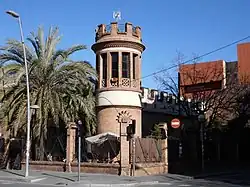 Casa Agustí is a modernista building in the Progrés quarter of Badalona (metropolitan area of Barcelona, Catalonia, Spain) built in 1893. It was designed by the renowned architect Lluís Domènech i Montaner as the residence of the engineer Eduard Agustí Saladrigas. The building became a restaurant in 1936 and currently serves food and refreshments. Among its remarkable features are the round red brick tower and the surrounding gardens.[1] The nearest existing Barcelona Metro station is Pep Ventura, and notoriously the undergoing extension of the metro network has allegedly damaged its façade.[2]