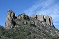 Casa Grande Peak is located in Big Bend National Park and the Chisos Mountains. It ranks as the fifth-highest peak in this park, mountain range, and county, but only the 26th-highest in Texas.[2][4] The peak is an extra-caldera vent, or volcanic dome, of the Pine Canyon caldera which formed about 32–35 million years ago during a period of volcanic activity.[5] Although modest in elevation, topographic relief is significant as the summit rises 2,000 feet (610 m) above Chisos Basin in less than 1 mile (1.6 km). Based on the Köppen climate classification, Casa Grande Peak is located in a hot arid climate zone with hot summers and mild winters.[6] Any scant precipitation runoff from the mountain's slopes drains into the Rio Grande watershed and the lower slopes of the peak are covered by juniper, oak, and piñon. "Casa Grande" is Spanish for "big house." The mountain is so named because it resembles a large castle, and the toponym was officially adopted in 1939 by the United States Board on Geographic Names.[3]