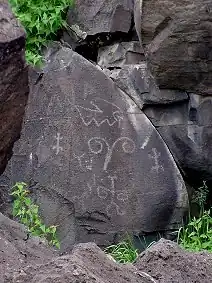 Outside this circular feature, is a Bear Claw petroglyph, which at vernal equinox sunset, fits into a shaft of light produced by a natural rock grouping. " Both the Hopi and Zuni have bear clans or bear societies who may have created this image for reasons unknown" (Zoll 2012 p. 18).
