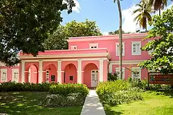 Casa Rosa or Casa Rosada, also known as the Pink House, is a historic house located in Old San Juan, Puerto Rico. The house was built in 1812 as a barrack for the troops assigned to the San Agustin Bastion. It was converted to an officers quarters in 1881 by the Spanish Army. The building was later converted to a museum used for Puerto Rican crafts. Today it operates as a day care center for the children of employees of the Government of Puerto Rico. [1]