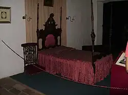 A bed which belonged to Fernando de la Mora is placed here and his portrait can be seen on the wall. Below the picture, there is an embroidered shirt worn by him. A large chest used by Juan Bautista Rivarola, a peculiar toilet, a magnificent prie-dieu and a polychrome niche complete the atmosphere of the room.
