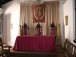 Crossing the yard, there is a replica of the Capitulary Saloon of the old Cabildo de Asunción, the first in the Río de la Plata, established on September 16, 1541. In the centre of the room, there is the coat of arms of Spain from 1800. On the walls hang a magnificent portrait of the Emperor, Charles V; besides, other pictures show several revolutionary intents, previous to the independence.