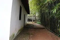 The main house of Sítio da Ressaca has few rooms, only six, including the porch. The roof is of the gable type, which was common among some buildings of the period. The doors and windows are made of canela-preta, a strong and resistant wood, and the roof tiles were produced by slaves. But unlike other Bandeirista houses, Sítio da Ressaca did not have a chapel in a separate room, only a niche for the placement of the image of a saint.[17] The porch is fixed to the retaining wall.[16]