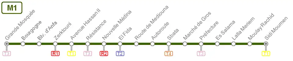The Casablanca Metro was a public transport project dating from the 1970s[1] in Casablanca, Morocco. It was designed to address the need for public transport in Casablanca, which suffers from traffic congestion caused by the city's growth.[2] The project was abandoned and then reopened several times, most recently in 2013, when the city announced that it will build a 15-kilometer long metro line above ground, connecting the city's Sidi Moumen neighbourhood with the Boulevard de la Corniche near the Hassan II Mosque.[3][4] However, on June 30, 2014, the Casablanca city council decided to abandon the metro project due to high costs; instead, the city will focus on expanding its existing tram lines.[5]