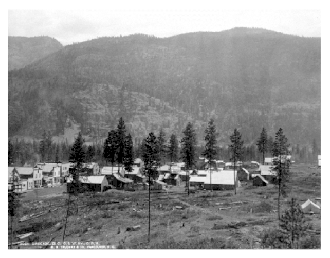 The early townsite only had two buildings: a general store and a restaurant. Chandler himself slept in a tent. However, by the time the railway construction crews arrived in 1898, Cascade City was booming and although there were fourteen hotels, there was rarely a room available.[3]: 166