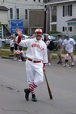 However, residents of Stockton, California—which was known for a time as Mudville prior to incorporation in 1850—also lay claim to being the inspiration for the poem. In 1887, Thayer covered baseball for The Daily Examiner—owned by his Harvard classmate William Randolph Hearst—and is said to have covered the local California League team, the Stockton Ports.[20] For the 1902 season, after the poem became popular, Stockton's team was renamed the Mudville Nine.[21] The team reverted to the Mudville Nine moniker for the 2000 and 2001 seasons. The Visalia Rawhide, another California League team, currently keeps Mudville alive playing in Mudville jerseys on June 3 each year.
