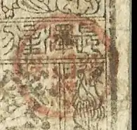 Imperial Chinese banknotes that were denominated in strings of cash coins often featured designs depicting physical strings of cash coins to showcase their nominal value, usually the higher their denomination was the more cash coins were displayed on the paper note.[26][27][28]