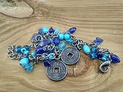 Cash coins when used for feng shui purposes can be combined with other feng shui items to enhance their usage.[19] For example, if they are added to a Pixiu, it can strengthen the wealth effect of the Pixiu statuette, and if you add it to Qilin, it can also increase the power of eliminating evil spirits of the Qilin statuette.[19] Other examples include gourds, where they supposedly strengthen its healing functions and countering evil spirits (sha qì), mystic knots for protection, and crystals for wealth.[16]
