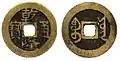 Outside of China, Chinese cash coins have inspired the design of the Japanese mon,[7] Korean mun,[8] Ryukyuan mon,[9] and Vietnamese văn[10][11] currencies and the last series of cash coins produced in the world were the French Indochinese Bảo Đại Thông Bảo (保大通寶) during the 1940s.[12]
