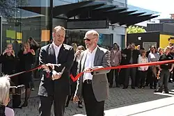 In April 2011, it was announced that part of Cashel Street was to reopen on 29 October 2011.[37] Temporary shops made from shipping containers were fitted out as retail premises, accommodating 27 shops known as Re:START.[38] Ballantynes, Christchurch's remaining department store, also reopened and is the retail anchor. Prime Minister John Key officiated at the opening ceremony.[39]