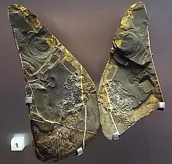 In 1992, an amateur fossil collector spotted the remnants of this four-legged creature on the shore of Cheese Bay, Scotland.[7] For the next five years, the fossil languished at the National Museum of Scotland in Edinburgh while researchers focused on other projects. Consisting of a slab and counterslab (compression fossil) of a single partial skeleton, the fossil was cataloged with the specimen designation NMS G.1993.54.1. Around 1997, work began to expose the remainder of the fossil from the surrounding matrix. The work revealed that the animal probably lived in an environment much drier than previously understood. The findings were first reported in the April 8, 1999 edition of Nature.[1]