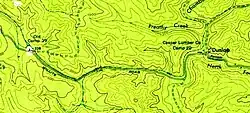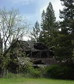 Hare Creek canyon was so narrow the track had been built on cribbing and trestles over the stream. Mallet locomotive number 7 derailed on one of those trestles and rolled into the creek on 30 April 1940. Locomotive number 7 had to be dismantled, and rebuilding at Caspar was not completed until late 1941. All branch lines had been dismantled by 1944. Trucks brought the logs to Camp 20, and Mallet locomotives 5 and 7 pulled trainloads of logs from Camp 20 to the mill at Caspar. The other locomotives rested unused.[3] A labor strike closed the sawmill and railroad in December, 1945. Rail operations were not resumed when the sawmill reopened;[2] although locomotive number 3 would be fired up once a month to move a tank car of fuel oil into the woods from Caspar through 1948. Most of old growth timber on Caspar Lumber Company lands had been cut by 1947. The sawmill operated until 18 November 1955.[3]