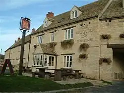 Cassington's two remaining public houses are the Chequers[21] and the Red Lion, on opposite sides of Upper Cassington green. In the early 2000s the Chequers was demolished and rebuilt by a redevelopment team led by Stephen Ibbitson, alongside a row of new houses and a village hall. It is owned independently, previously controlled by the Young's pub company. The Red Lion remains in its original building, complete with a stone-lined well visible inside the building. There is a small newsagent in the village but there are no other shops - the part-time Post Office has also closed.