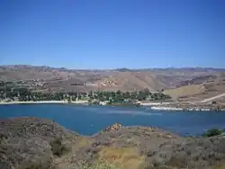 Castaic Lake (Chumash: Kaštiq)[2] is a reservoir formed by Castaic Dam on Castaic Creek, in the Sierra Pelona Mountains of northwestern Los Angeles County, California, United States, near the town of Castaic.