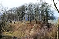 Outside of the village, on the peaks known as Herrenberg and Schlossberg, are the remains of the two castles. The Oberschloss Castell marks the location of the original seat of the Counts of Castell. The medieval castle was expanded during the Second Margrave War in 1553. In 1607 to 1615 it was replaced by an early-modern one. This in turn fell into disuse after Schloss Castell was built. Besides trenches and structures below ground, only a stair tower with some attached walls remains today (this dates from the rebuilding in the early 17th century).[4]