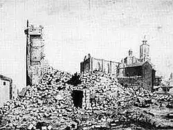 Later, during the period of the Peninsular War, and due to the large increase in troops, the Castle del Patriarca (and also the Castle de Pilat) was intended to serve as accommodation for the Napoleonic French troops. Possibly it was the circumstance that led to it was dynamited on 19 August 1813 to evacuate the city the Frenchs. Historians tell that the French general Bartoletti put so much interest in disappear it, in the words of the Canon Huyà, the detonations of the mines made so much din "that until the pavement where we were made shake; We saw the flames of fire and that's when we realized that this sturdy monument had ceased to exist".