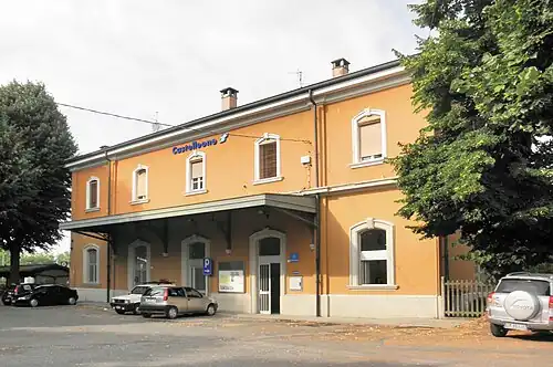 The station was opened on January 1, 1863, with the opening of the first section of the Treviglio–Cremona line, which ran from Treviglio to Soresina.[2] Service from Castelleone to Cremona would open with the full inauguration of the Treviglio–Cremona line on May 1, 1863, connecting Cremona to the Milan-Venice line. At the time, the Milan-Venice line passed through Bergamo.[3]