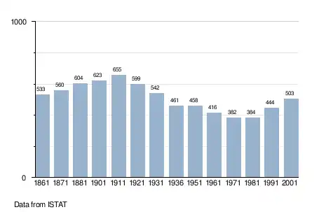 - ^ "Popolazione Residente al 1° Gennaio 2018". Italian National Institute of Statistics. Retrieved 16 March 2019.