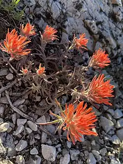 The species name scabrida means "rough", referring to the stiff hairs covering the stems and leaves. In English it is also known by the related common name rough paintbrush and is also known as sandstone paintbrush or slickrock paintbrush.[9][14] Additionally, it is sometimes called Eastwood paintbrush, a reference to Alice Eastwood, the botanist who described the species.[7]
