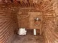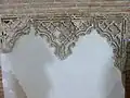 The castle was constructed under the supervision of a Moorish architect and engineer. Such Moorish engineers were routinely commissioned to construct large buildings during the medieval times and were called "Alarife" (one who understand the art of construction).[6] Brick was used for most of the construction. However, the bricks used in the castle are different from ordinary bricks used to build houses. These are hardened bricks that are capable of withstanding enemy onslaught during sieges.[7] The bricks were laid smooth with the mortar, so the lines of the brickwork are clearly visible along with the mortar. This created a distinctive pattern on the castle. The castle was constructed in classic Mudéjar fashion. Brickwork and plaster work was used to create geometrical patterns depicting a hybrid of Moorish Muslim and Christian Gothic architecture. While the main construction is of brick, limestone and plaster were used in the balistraria and embrasures. White limestone was also used to decorate columns in the courtyard and the keep, as well as numerous other features on the facade of the keep.[8]