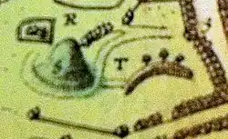 Castle Howe was built after the Norman conquest of England, either in 1087 by the Norman nobleman Ivo Taillebois, or by the nobleman Ketel some time after 1100.[1] The castle was designed as a motte and bailey fortification, with a circular motte 11 m high and 48 m wide at the base, and a curved bailey hugging the ridge alongside it.[2]