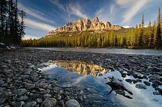 ![]() Castle Mountain from the southwest; Bow River in foreground | |