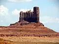 Castle Rock is situated four miles (6.4 km) north-northeast of the Monument Valley Tribal Park Visitor Center, on Navajo Nation land. It is an iconic landform of Monument Valley and can be seen from Highway 163. Precipitation runoff from this landform's slopes drains into the San Juan River drainage basin.[3] Topographic relief is significant as the summit rises 800 feet (244 meters) above the surrounding terrain in 0.25 mile (0.4 km). This landform's toponym has been officially adopted by the United States Board on Geographic Names.[2] It is so named because the butte resembles the silhouette of a castle.[4] The first ascent of the summit was made on May 8, 1960, by Harvey T. Carter, Layton Kor, and John Auld.[5][6]