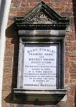 Numbers 6, 8, 10 and 12 were originally a merchants houses and was used as nursing home from 1920 to 1990.[19][20] The district nurses home originally opened in 1902 at Number 2 King Square to commemorate Queen Victoria but was moved to Castle Street in 1926.