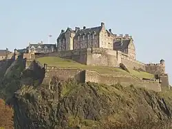 On 18 October 1988, the four large-format high value Machin stamps, printed in photogravure and issued since February 1977, were replaced by a new Castle series.[13] The four new stamps were printed in intaglio, and their illustrations were based on photographs taken by Prince Andrew. The profile of Queen Elizabeth II appeared on one of the upper corners, and was based on Arnold Machin's sculpture that appears on the Machin series. The same castles were used as for the 1955 series: Carrickfergus on a £1 green stamp, Caernarfon on the £1.50 brown, Edinburgh on the £2 blue and Windsor on the £5 brown. The broken grotto design was replaced by a white background, and was considered austere compared to the romantic approach of Lyndon Lamb.[14]