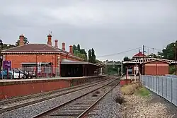 In 1877-80 the residences numbered over 2000, and there was a population in the township of 7,500,[16] forming an electorate in itself, within the district, the County of Talbot, of 19,000 people. Four trains ran daily to and from Melbourne with fares at 13 shillings (A$80 value in 2021) for First Class, and 8s. 6d. (A$52.70) for Second.[22]
