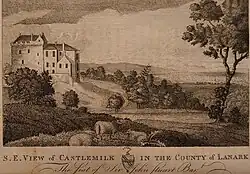 The lands of Cassiltoun of Carmunnock,[1] located on high ground south of Glasgow between the hills of the Cathkin Braes and the burgh of Rutherglen near the River Clyde, were acquired by the Stuarts of Castlemilk in Dumfriesshire (an estate near Lockerbie which still exists also featuring a grand mansion)[2][3][4][5] in the 13th century. In the 16th century, they renamed the Cassiltoun estate Castlemilk.[6][7][8][9] Five generations of the Stuart family formed a dynastic baronetcy from the 1660s to the 1790s.[6][10]